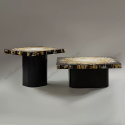 Bàn trà khối tròn memaid chân gỗ sơn đen
